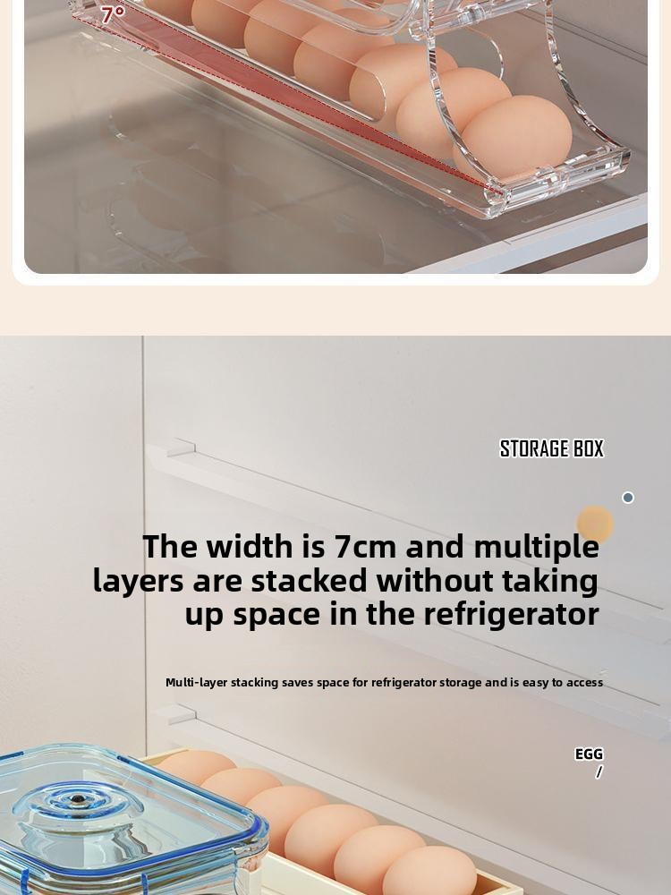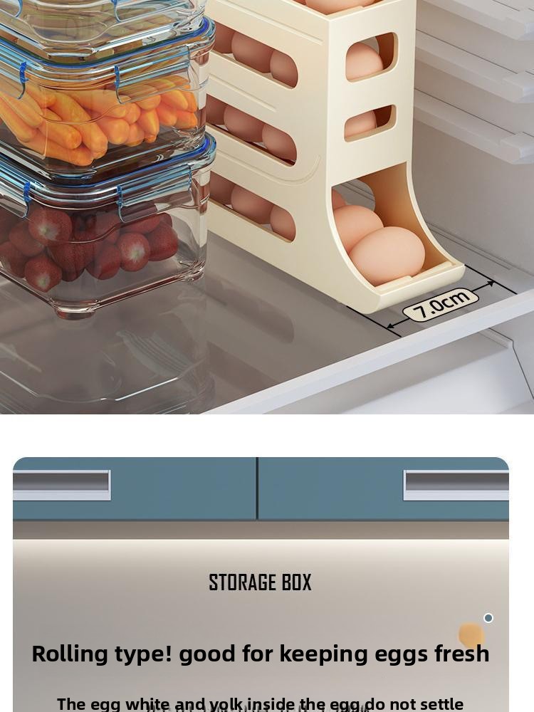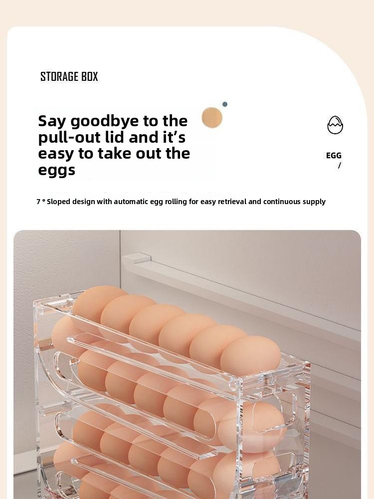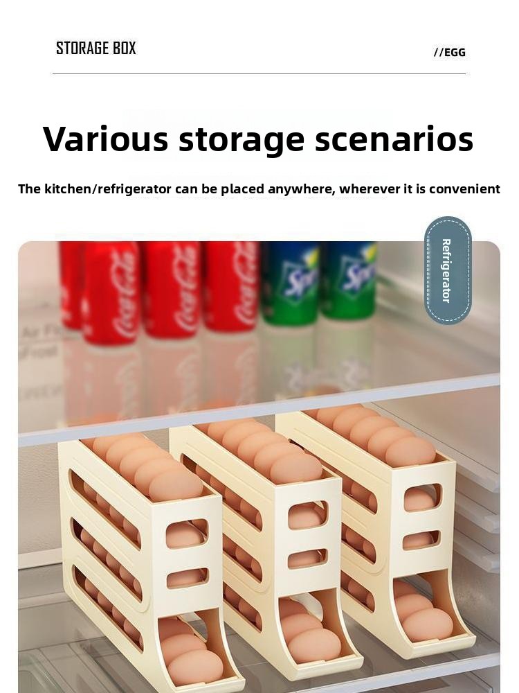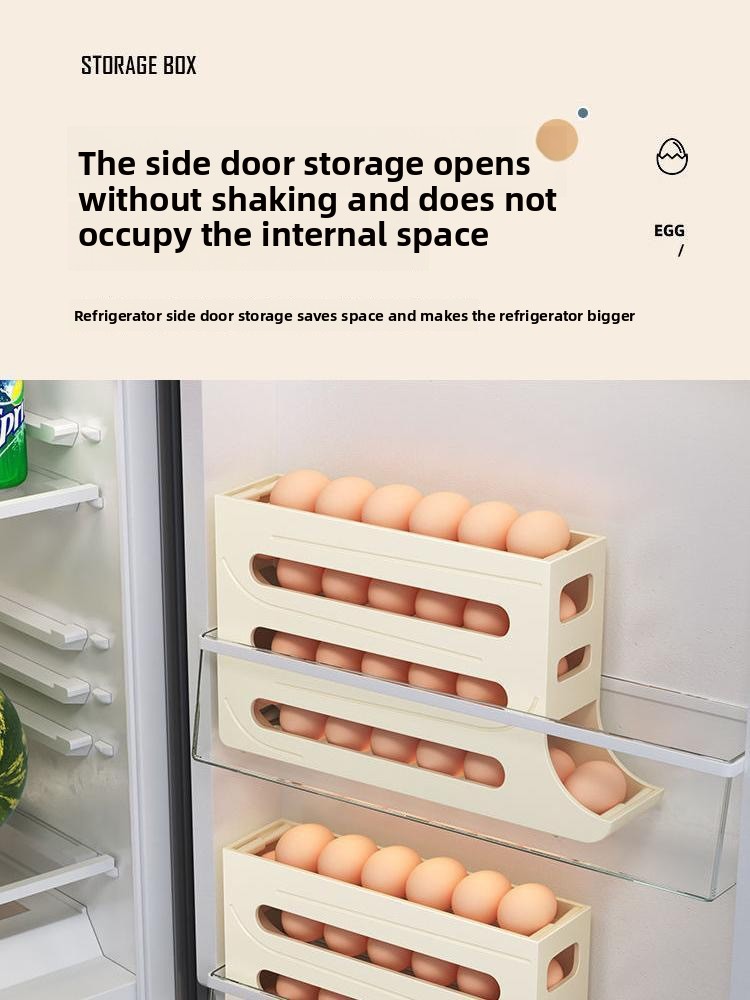Slide rolling egg storage box household refrigerator side door egg pickup artifact kitchen new automatic rolling egg rack